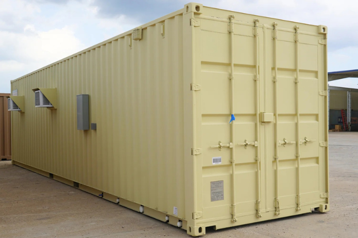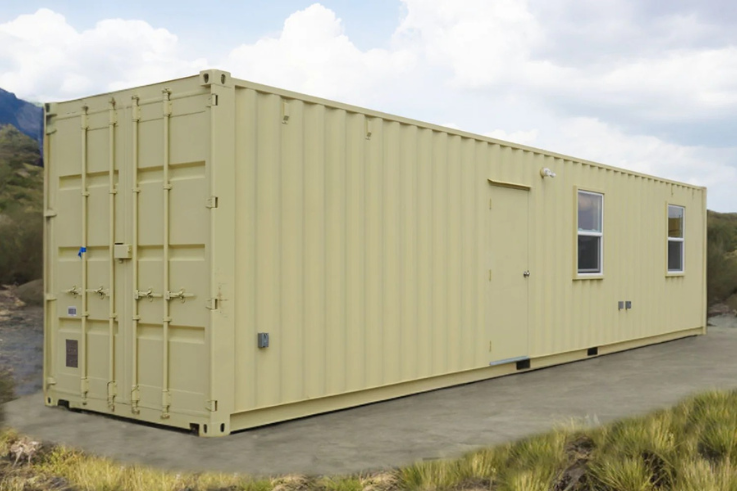 VIRTUAL TOURExperience the ultimate in comfort and convenience with our 40ft Retreat Cabin Shipping Container. Ideal for a personal retreat or a cozy getaway, this high cube 1-trip shipping container offers a spacious and functional living space with all the modern amenities you need. Key Features:Spacious High Cube Design: Extra vertical space provides a more comfortable and airy living environment.Secure Entry: A 36″ steel entry door ensures safety and security for your retreat.Natural Light: Two 36″ x 48″ windows provide ample natural light and scenic views.Comprehensive Electric Package: Includes a 200 Amp service panel, interior LED can lights, an exterior LED floodlight, and multiple outlets for all your electrical needs.Climate Control: Stay comfortable year-round with two 18,500 BTU A/C units with heat, each encased in a secure frame and weather cover.Efficient Insulation: Interior 2LB spray foam insulation (18 R-Value) ensures optimal temperature regulation and energy efficiency.Rustic Interior Finish: Interior framing, pine plank siding, and cedar trim create a warm and inviting atmosphere.Full Bathroom: Features a 36″ one piece shower, 30″ Mahogany Vanity with Sink, Toilet, Tankless Water Heater, & Washer/Dryer ConnectionsSpace-Saving Design: Two interior pocket doorsKitchenette with Denver Cabinets, 30″ Stainless Steel Sink, and Formica CountertopDurable Flooring: Vinyl flooring ensures easy maintenance and longevity.Stylish Exterior: Finished in New Container Tan RAL1015 Enhance your relaxation with this versatile and portable retreat cabin, offering a secure, comfortable, and efficient living space for your personal getaways. Price includes our industry-leading 10-year structure and 10-year no-leak warranty. Lifetime customer support on all grades of containers for as long as you own the container. All prices also include delivery to the zip code you specified. Note – container shown in the pictures is an example of the container condition and rating we offerDeliveryDelivery OptionsTilt Bed: The container is delivered using a pickup truck pulling a 40′ gooseneck hydraulic tilt trailer, with a combined length of approximately 70′. Once in position, the driver will tilt the trailer, allowing the back of the container to touch the ground before driving out from underneath it. No customer assistance is needed. Ensuring adequate space for delivery is essential. This option is available within a limited 200-mile radius of the manufacturing site stated at checkout. Additional charges may apply for longer distances. Flatbed: The customer is responsible for unloading the container off the flatbed. A common method is using a large forklift or crane. The customer must arrange for the unloading of the container. The delivery truck allows one hour for unloading and will charge $100 for any additional time. Unless otherwise agreed in writing by the Seller, all products shall be packaged and shipped according to the Seller’s standards and general practices. Delivery Requirements20′ Container: 110′ of straight, unobstructed space.40′ Container: 130′ of straight, unobstructed space.Driving: Minimum 15 feet of height.Unloading: Minimum 22 feet of height along the entire unloading path.Width Clearance: Minimum 10 feet along the delivery path. Important Notes: Unless otherwise agreed in writing, delivery shall be made in accordance with Container One’s shipping practices in effect on the date of shipment. Delivery dates provided by seller are estimates only. The seller will make commercially reasonable efforts to deliver in accordance with such dates; however, the seller shall not be liable, financially or otherwise for failure to deliver as per the estimated timeline.The Buyer is responsible for all site preparation, including but not limited to ground stabilization and preparation.If, upon arrival, the site is deemed inaccessible by the driver or inadequately prepared, additional fees may be assessed to ensure the site is suitable for the receipt of goods.The buyer or the buyer’s designee is required to be onsite to accept delivery. Click here for more container delivery options and information.Specifications*This is a new 40ft HC 1 trip shipping container home* This container is available for customizationIn Stock Paint 40′ $838Custom Paint(must provide us with the Sherman Williams paint code)40′ $1417Solar Roof Vent $534 DoorsDoor- Exterior 36″ w/Deadbolt $1,831Door- Exterior 48″ w/Deadbolt $2,064Door Bar $249Door- Exterior 36″ w/ Half Glass $1,988Door- Sliding With Glass $1,578Door- French $2,271 Hanging shelving 40′ Half Hanging $140340′ Full Hanging $2701Exterior Door Size/Shape1: 36″ SteelWindows Size/Shape2: 36″x48″ElectricYesLength40’Bath Full/Half/NoneFullAC Unit(s)2FlooringVinylWidth8’Kitchen/etteKitchenSecurity PackageOptional (door bar, window shutter, AC bars)Wall CoveringPine siding/Spray FoamHeight9′ 6″External DimensionsLength: 40’Width: 8’Height: 9′ 6″Interior DimensionsLength: 39′ 4″Width: 7′ 7”Height: 8′ 9”