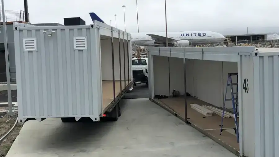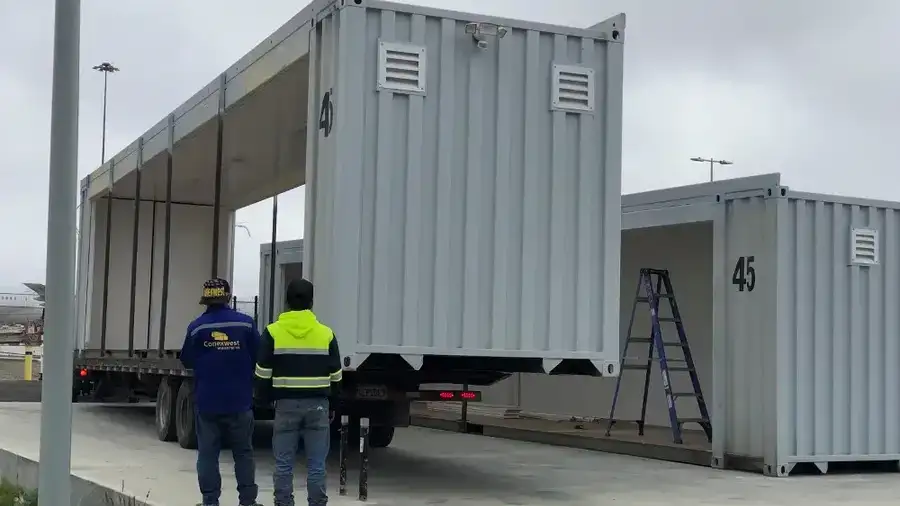 Each set includes two modified 45ft containers with structural steel reinforcements and a bolt-together hardware system for on-site assembly. Customers may opt for professional installation or assemble the unit themselves.